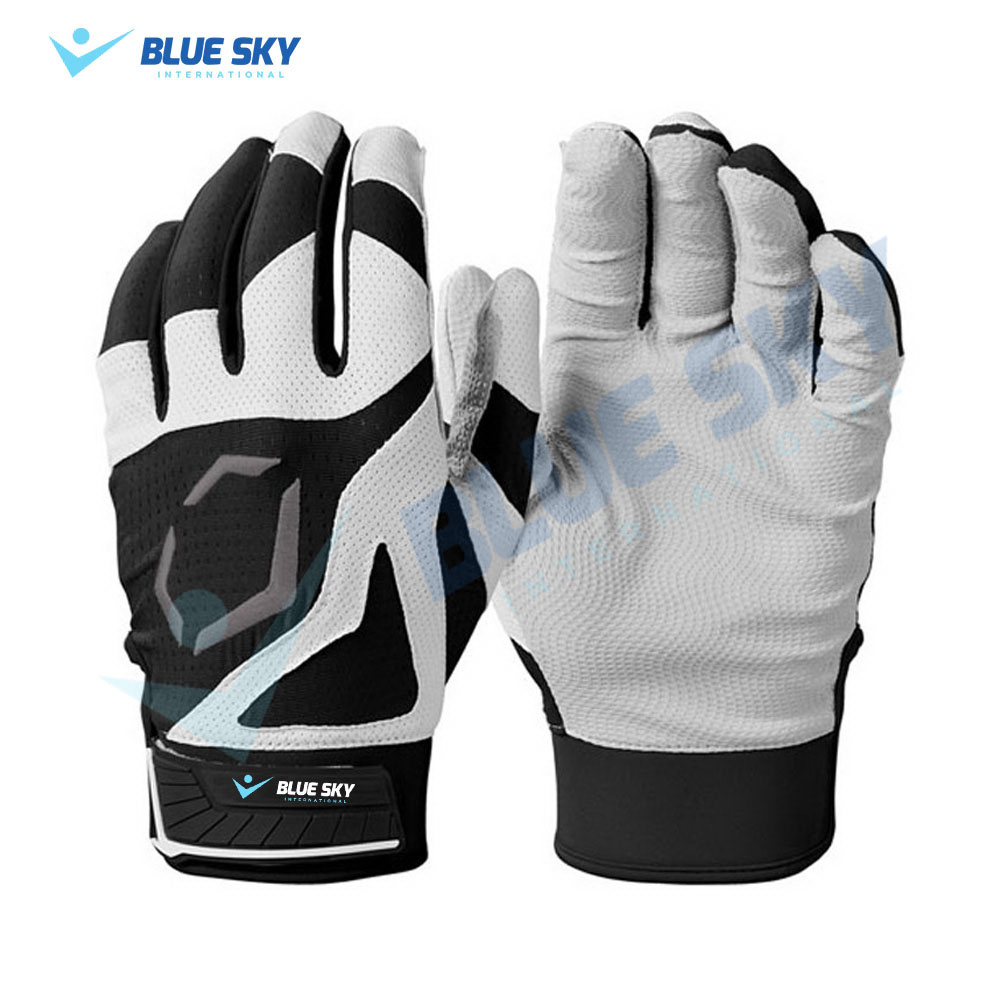 Reinforced with strategically placed leather and synthetic panels, the gloves are designed to withstand high-wear zones for extended durability. The wide elastic cuff, paired with a hook-and-loop closure, ensures a secure fit around all wrist sizes—minimizing movement and enhancing stability at the plate.
